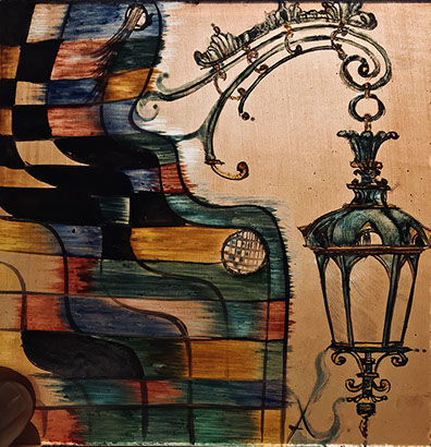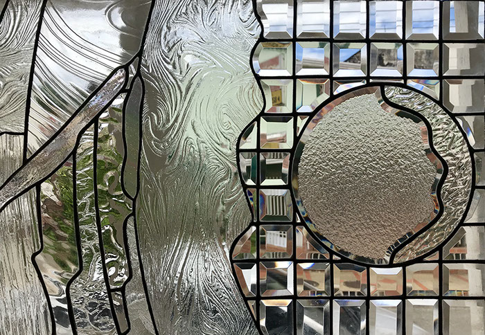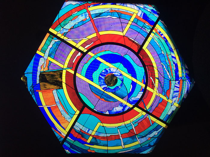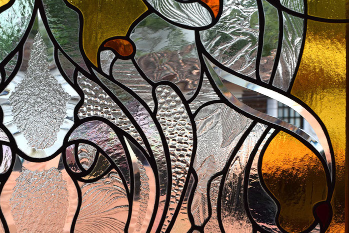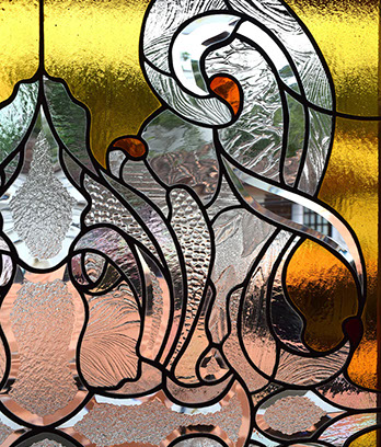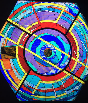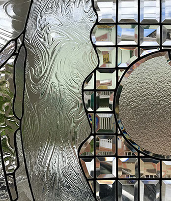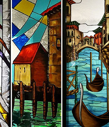 Basado en el corte de diversas texturas y colores de vidrio para luego ser ensamblado con la ayuda de cinta adhesiva cobrizada, con plomo y estaño.